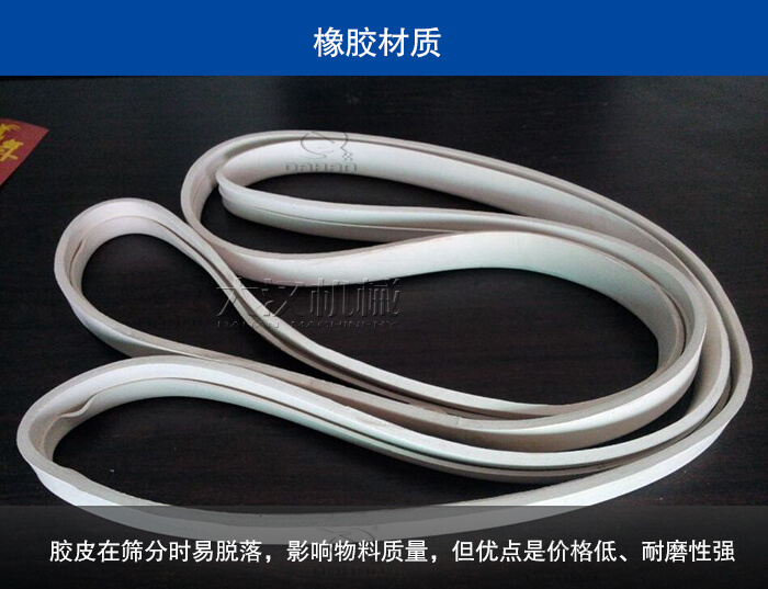 橡膠材質的密封件中使用廣泛,,但在食品、化工類行業使用較少,因為橡膠本身對于物料會有一定的污染成分,膠皮在篩分時易脫落,會嚴重影響物料質量,但其價格低、耐磨性強,用戶在購買振動篩應根據物料的不同要求安裝合適的密封件。