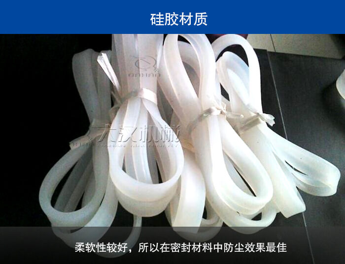 顏色呈乳白色,其柔軟性較好,所以在密封材料中防塵效果佳,對于篩分淀粉、泥子粉類高污環境防塵效果佳,大漢廠家建議用戶在選擇振動篩時應盡可能的選擇硅膠材質作為防塵優選,雖然成本高一些但實際價值要遠遠高于其它兩種材料(特別是食品及醫藥行業)。
