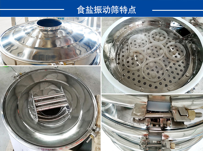 大漢食鹽振動篩細至500目或0.028mm,1~5層篩面設計,可以進行2~6個等級篩分和過濾,保證了食鹽振動篩的篩分量,并且大漢食鹽振動篩整機采用304不銹鋼材質,振動篩密封件材質要選擇硅膠材質,可以保證食鹽在篩分過程中不被污染,進一步提高了食鹽的篩分精度。