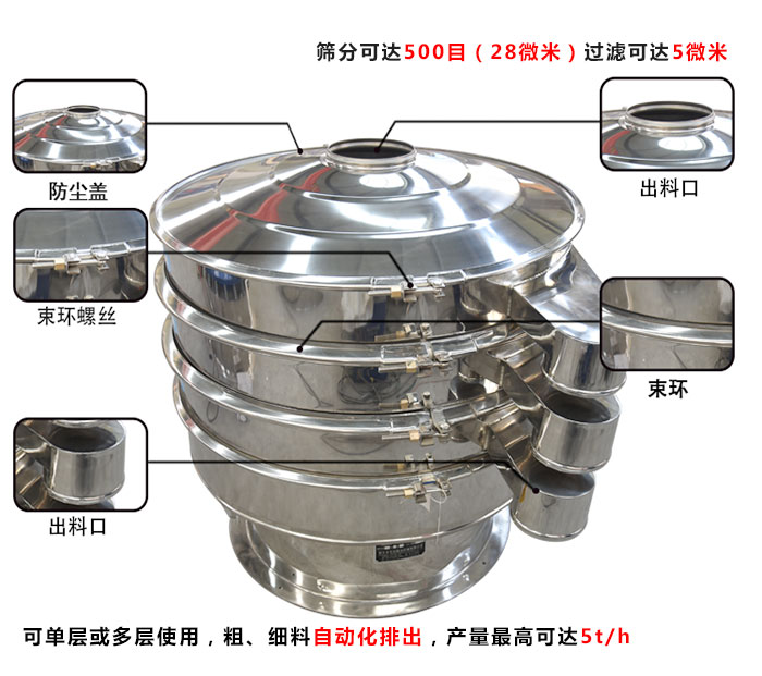 漿液旋振篩是專門針對(duì)液體過(guò)濾的設(shè)備,大漢漿液旋振篩可以過(guò)濾5微米的漿液...